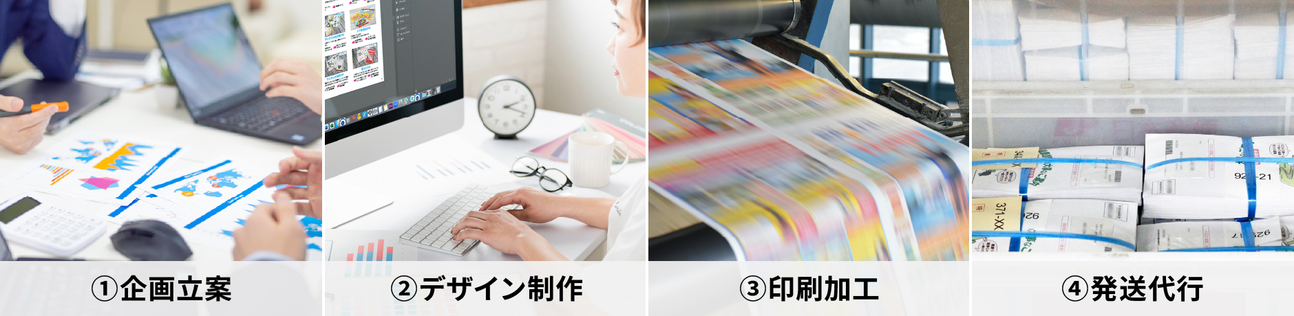 ⇒ 「①企画+②デザイン+③印刷+④発送」企画から発送まで一括依頼。